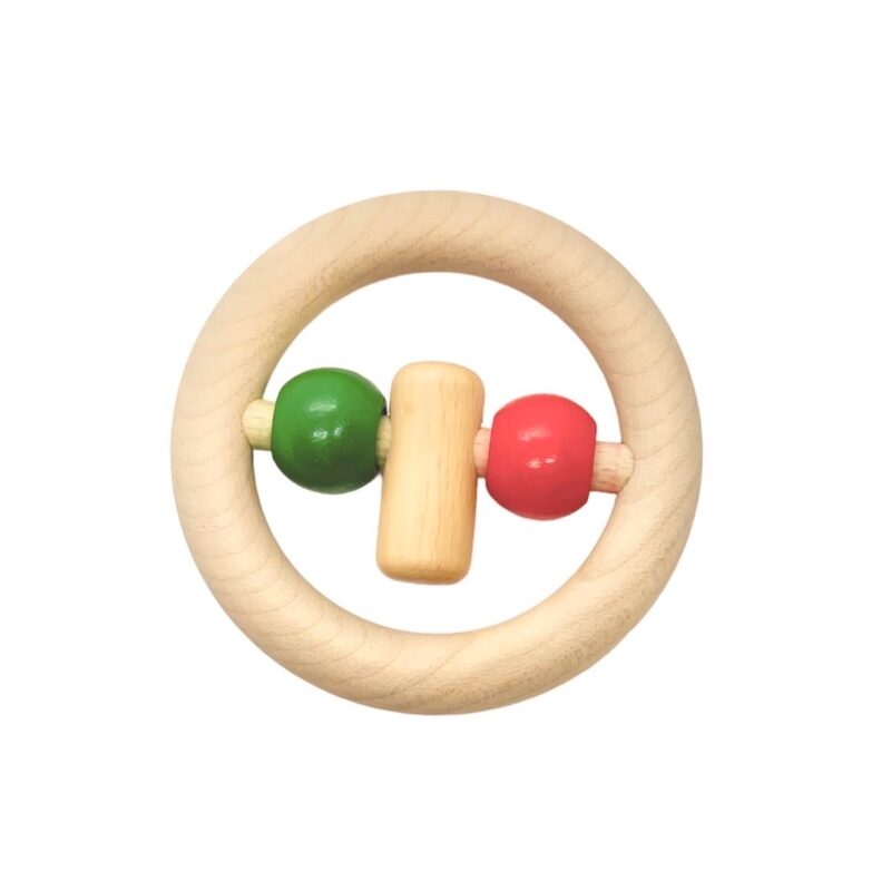 月齢3ヶ月以降の子どもに適した、木製リングラトルです。0歳児が握ったり振ったりしやすいサイズで作られているため、夢中になって遊んでくれるでしょう。リングラトルを振ることで腕や手指の筋肉を自然に鍛えることができ、運動能力の発育を助けることが可能です。