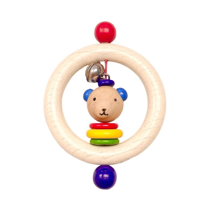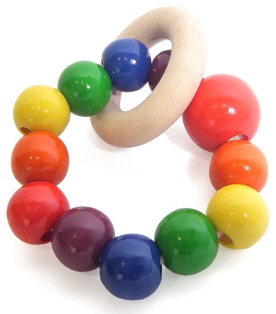 月齢3ヶ月以降の子どもに適した、木製リングラトルです。0歳児が握ったり振ったりしやすいサイズで作られているため、夢中になって遊んでくれるでしょう。リングラトルを振ることで腕や手指の筋肉を自然に鍛えることができ、運動能力の発育を助けることが可能です。