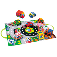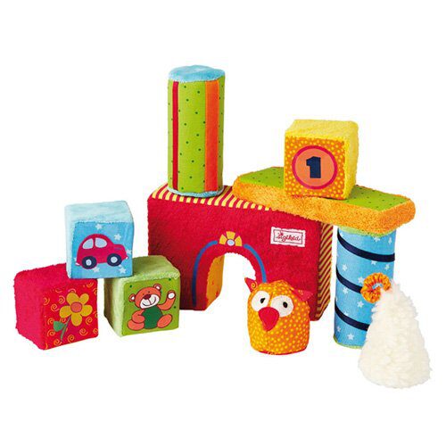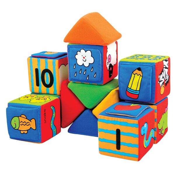 月齢8か月程度から遊べる、大きめサイズのブロックです。月齢6〜8か月頃にはブロックを握る・なめる、月齢10か月頃には投げる・崩すといったように、発育状態に応じた方法で遊ばせることができます。ブロックは柔らかい素材で作られているため、大人が足で踏んでしまっても、比較的安全です。