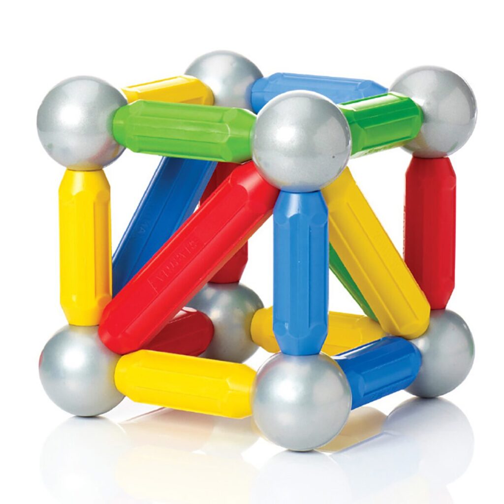 バーをつなぎ合わせて遊べる、カラフルな色使いで作られた安全なマグネットトイ。接続用ボールは全てのバーをくっつけることができるようになっています。最初は自由にくっつけたり離したりをしながら、少しずつ「赤はどれ?青とくっつけてみよう!」などと声かけしながら少しずつ創造力を磨いていきましょう!