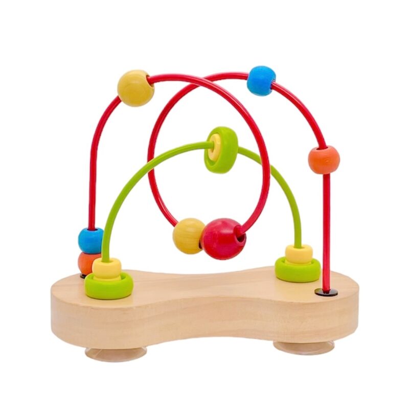 目で見たものを正確に手や指を動かして目的の場所へ運ぶ、協応運動を促すルーピングです。色鮮やかなワイヤーに沿ってビーズを動かし、くるくる回したり、カーブを滑らせたり。「これは赤だね、次は黄色を動かしてみようか」等と声かけして一緒に遊ぶことで、色や形の認識力も向上します。
