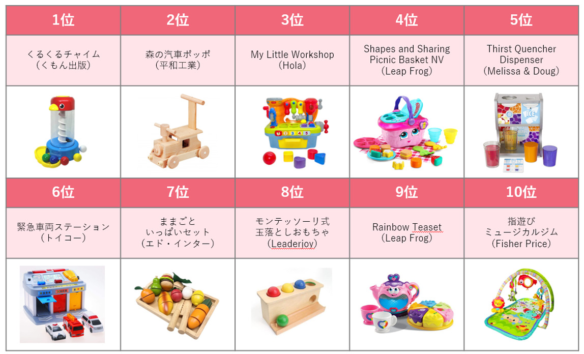◆「モンテッソーリ式玉落としおもちゃ」がベスト10入り!将棋の藤井聡太八冠やビル・ゲイツなど世界的企業の創業者が幼少期にモンテッソーリ式教育を受けていたことも話題となり、現役ママパパ達のモンテッソーリ教育や知育への関心度がアップ。このおもちゃを通して、子どもの成長を感じたママパパが多く、高評価を獲得。
