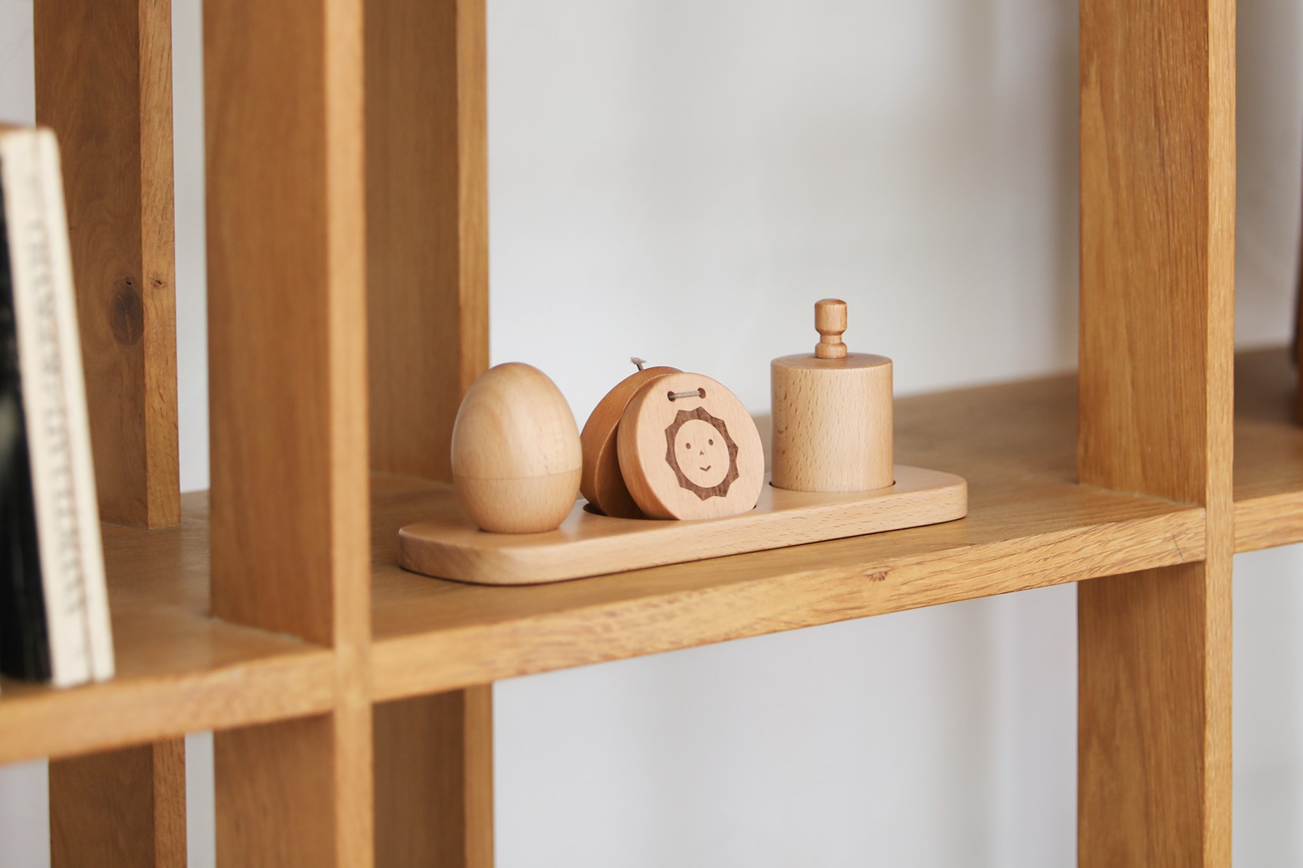 小さな赤ちゃんの手に馴染みやすいサイズ感や軽さ、温もりあふれる天然木の質感にもこだわっています。
